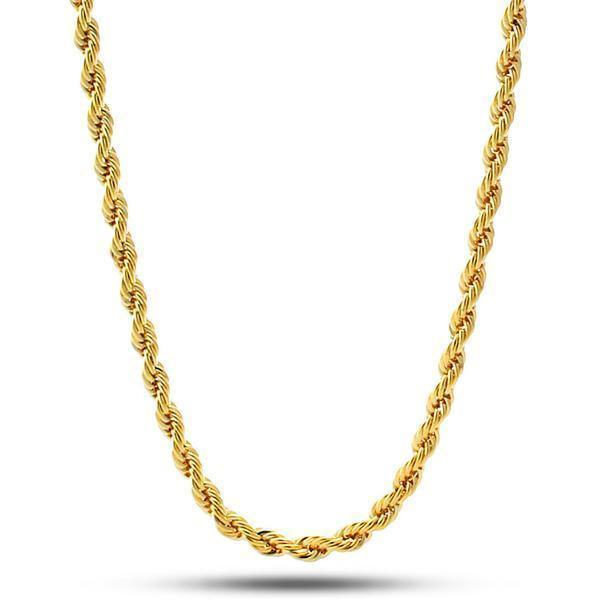 King Ice is bringing back the '80s with this gold rope chain. Each uses intertwined gold-plated links to provide that thick, old school hip-hop design. The chain is 4mm wide and comes in a variety of lengths.