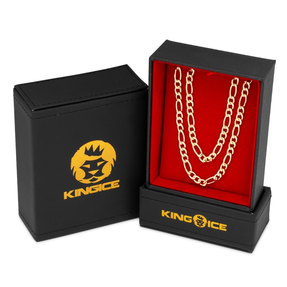 Among the many chains that became popular in hip hop, the Figaro chain is up there. King Ice's new 5mm 14K Gold Figaro Choker Set comes with two chains, one 18" and the other 20" for the perfect length match. Its multi link style is plated with 14K Gold for that class look.