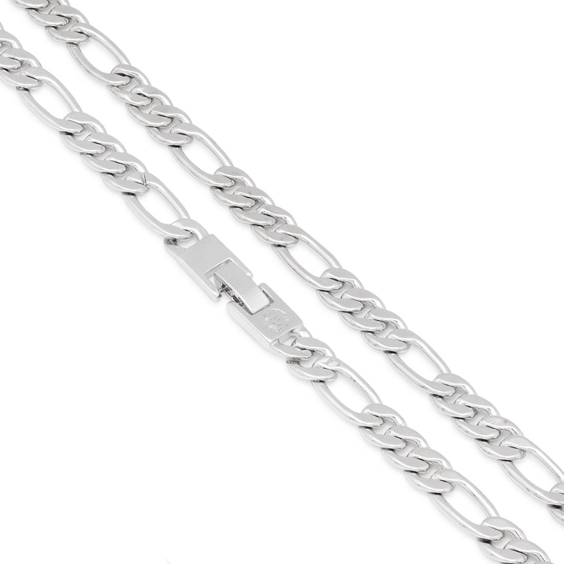 Among the many chains that became popular in hip hop, the Figaro chain is up there. King Ice's new 8mm White Gold Figaro Choker Set comes with two chokers, one 18" and the other 20" for the perfect length match. Its multi link style is plated with white gold for that class look.