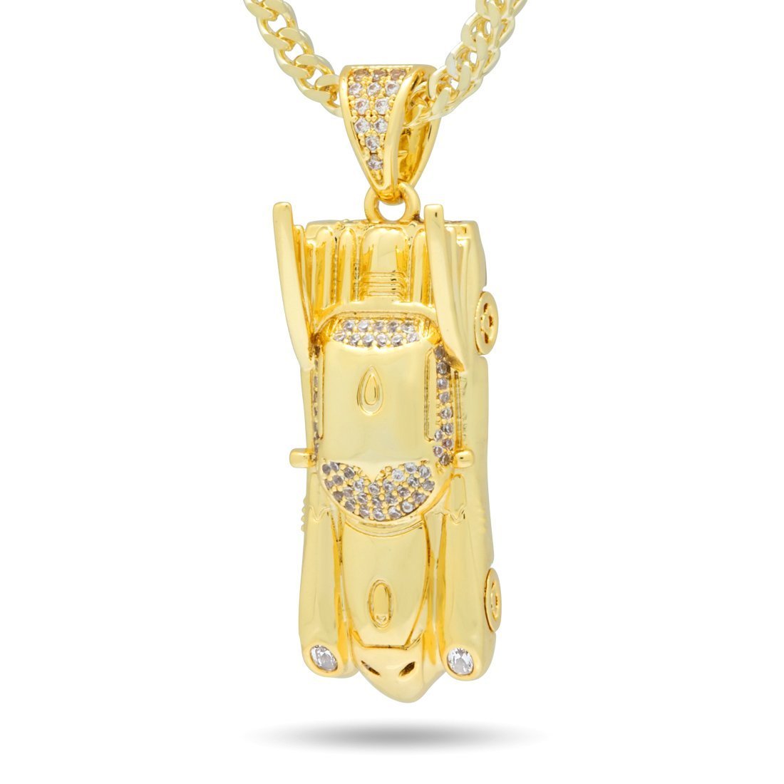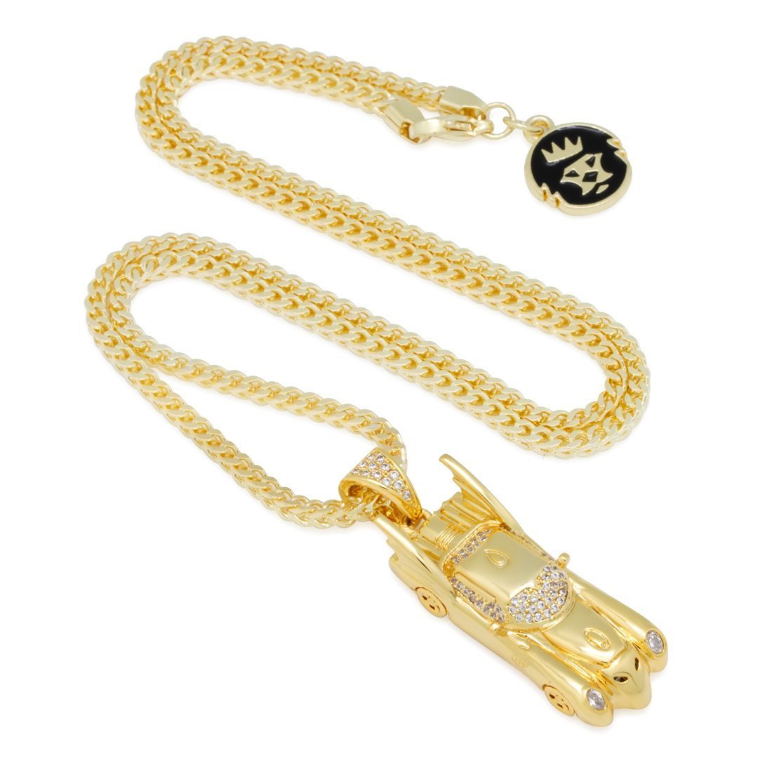 Inspired by one of the most iconic vehicles, the Automobile Necklace comes fully equipped with a 3-D design and 14K Gold plating. CZ stones decorate the windshields and headlights of the car. Each piece is paired with a 2.5mm, 20" stainless steel Franco chain.