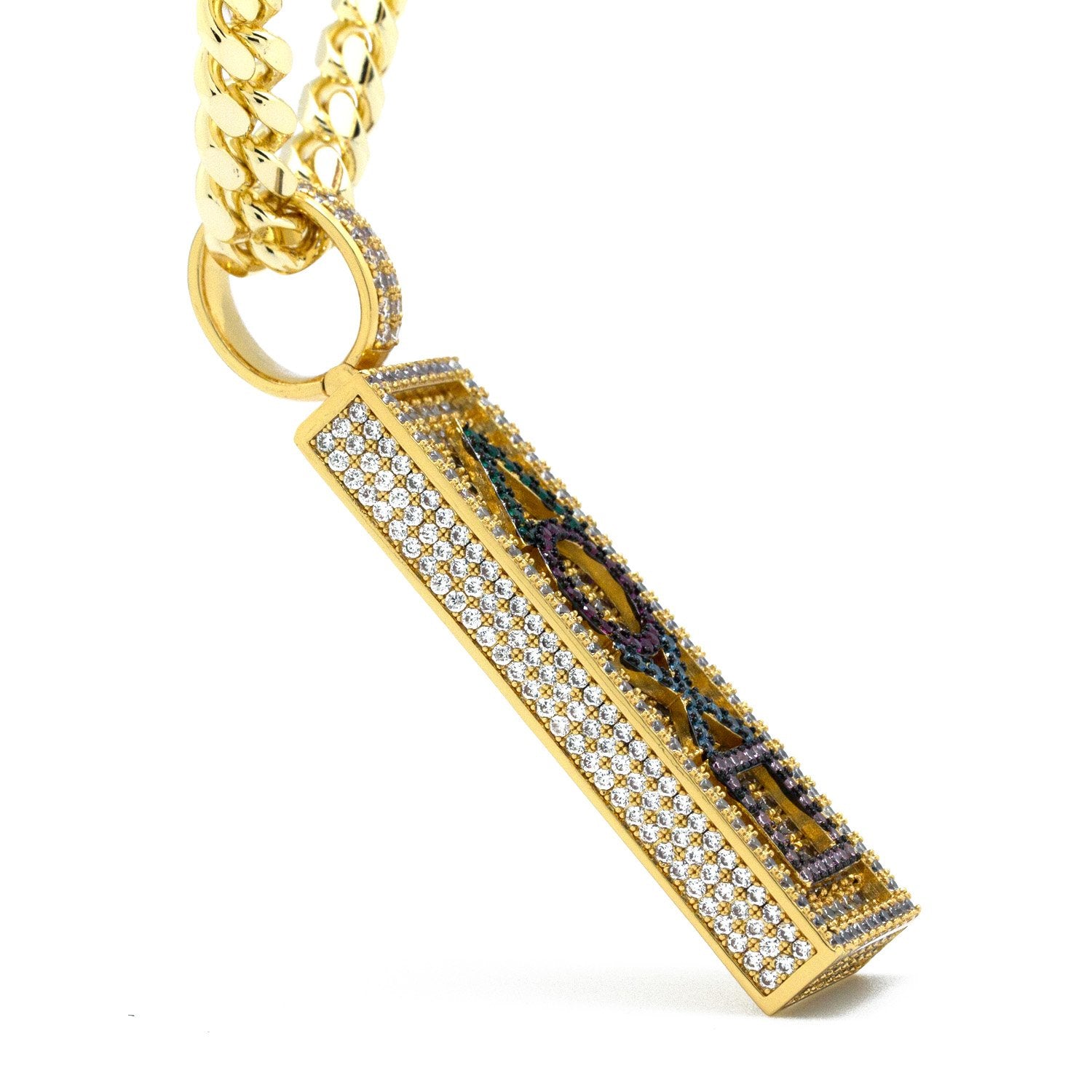 King Ice pays homage to these classic buttons with an icy statement. After it is dipped and plated five times in 14K Gold the pendant is then covered in VVS Simulates to finsih this iconic design. Each piece is paired with an 8mm, 20" Miami Cuban Chain.
