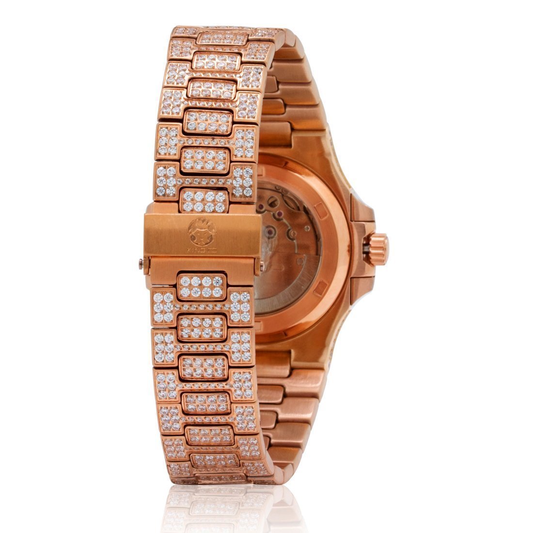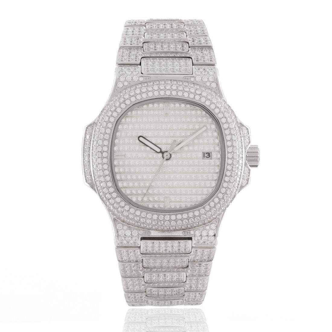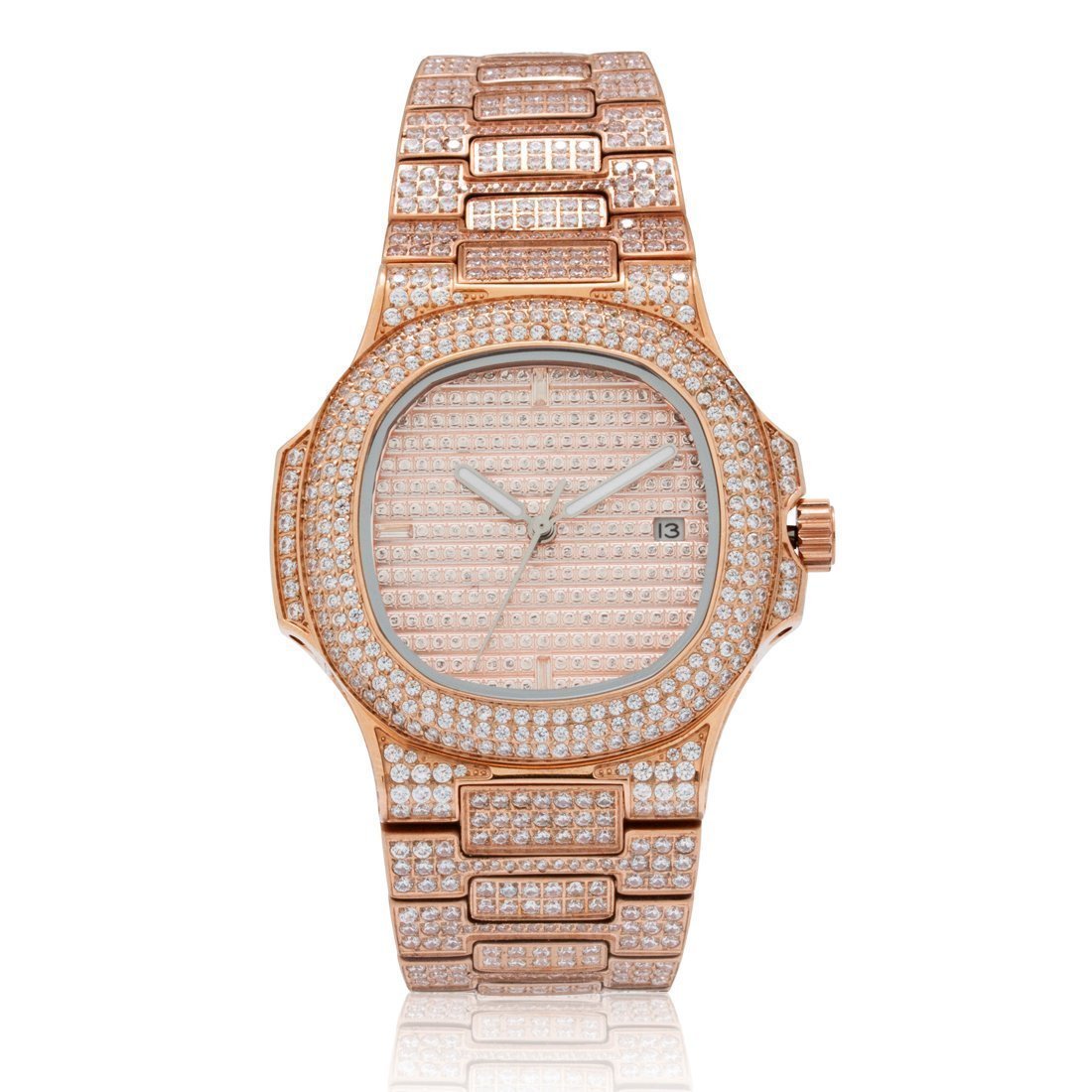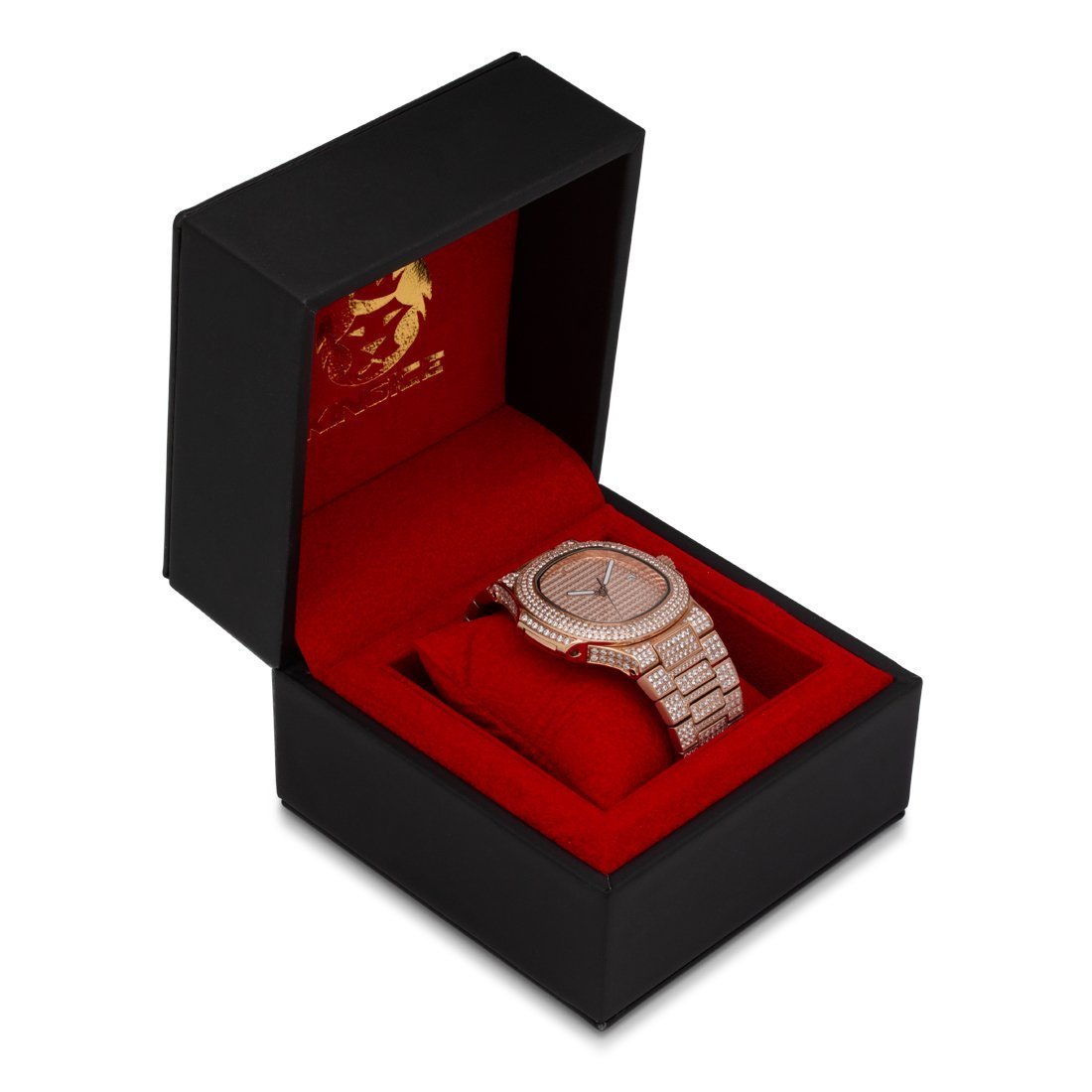 The Quad Watch from King Ice provides an elegant rendition and appreciation to this famous luxury watch. Each face and band features over 1,000 handset VVS Diamond Simulate stones to complete its look.