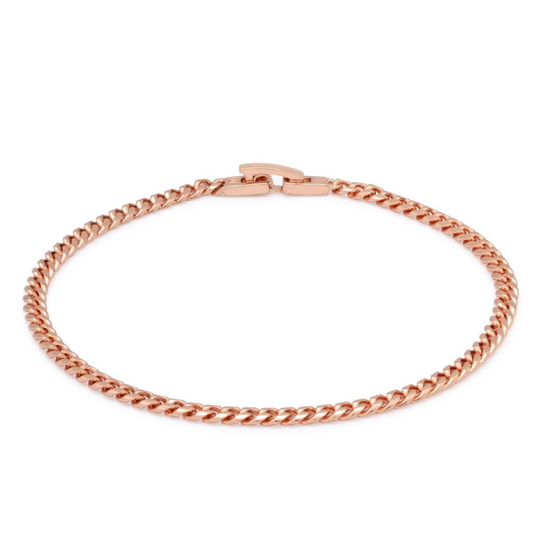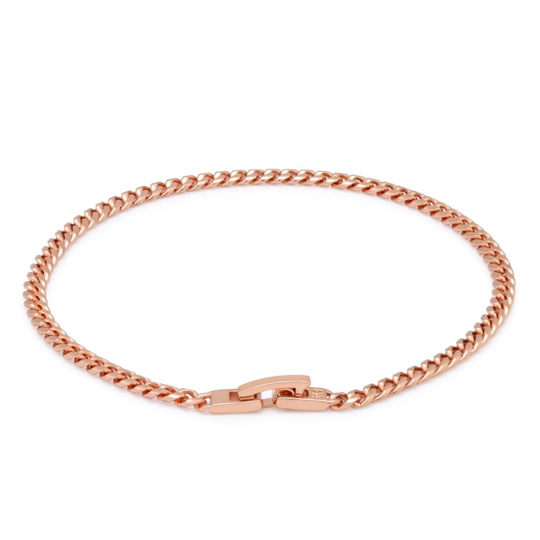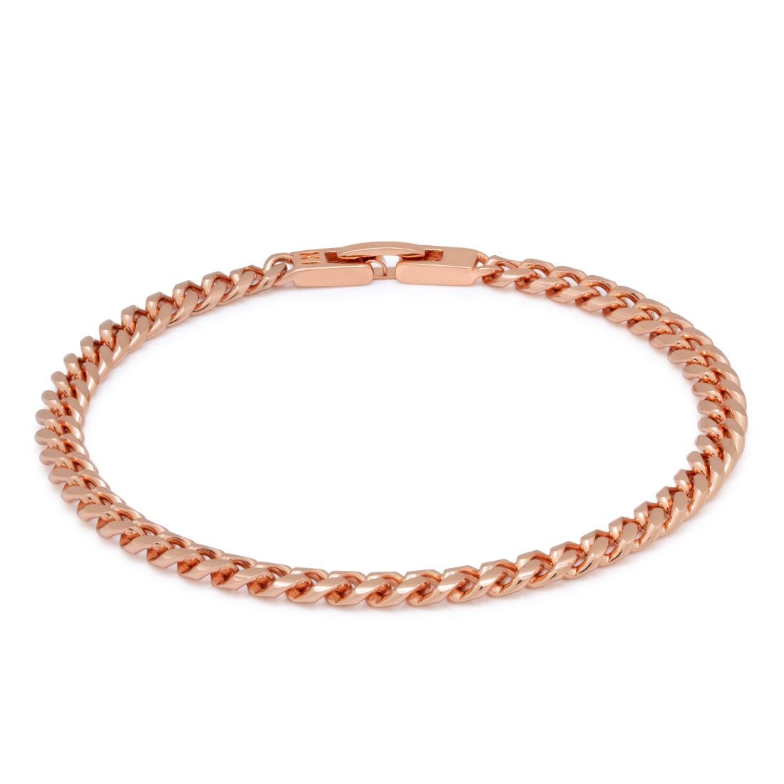 Inspired after its original 14K Gold version comes this redesigned Rose Gold Miami Cuban Chain Bracelet. Available in 3mm and 5mm, the link bracelet provides a sleek, stylish look that comes finished with the King Ice engraved logo on each fold-over clasp. The stainless steel bracelet measures 8".