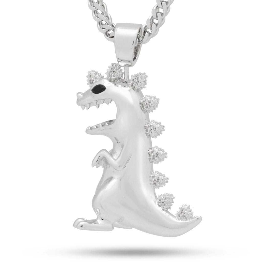 Just like the Rugrats, we re-imagined Reptar and brought him to life in street wear jewelry. Made in 3-D and available in 14K Gold plating and white gold plating, King Ice has captured the iconic look of Reptar that will resonate with the fans that grew up watching the popular Nickelodeon cartoon. Each Reptar necklace is paired with a 2.5mm, 20" Stainless Steel Franco Chain.