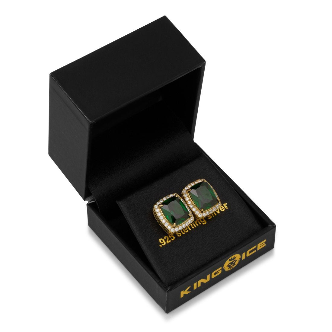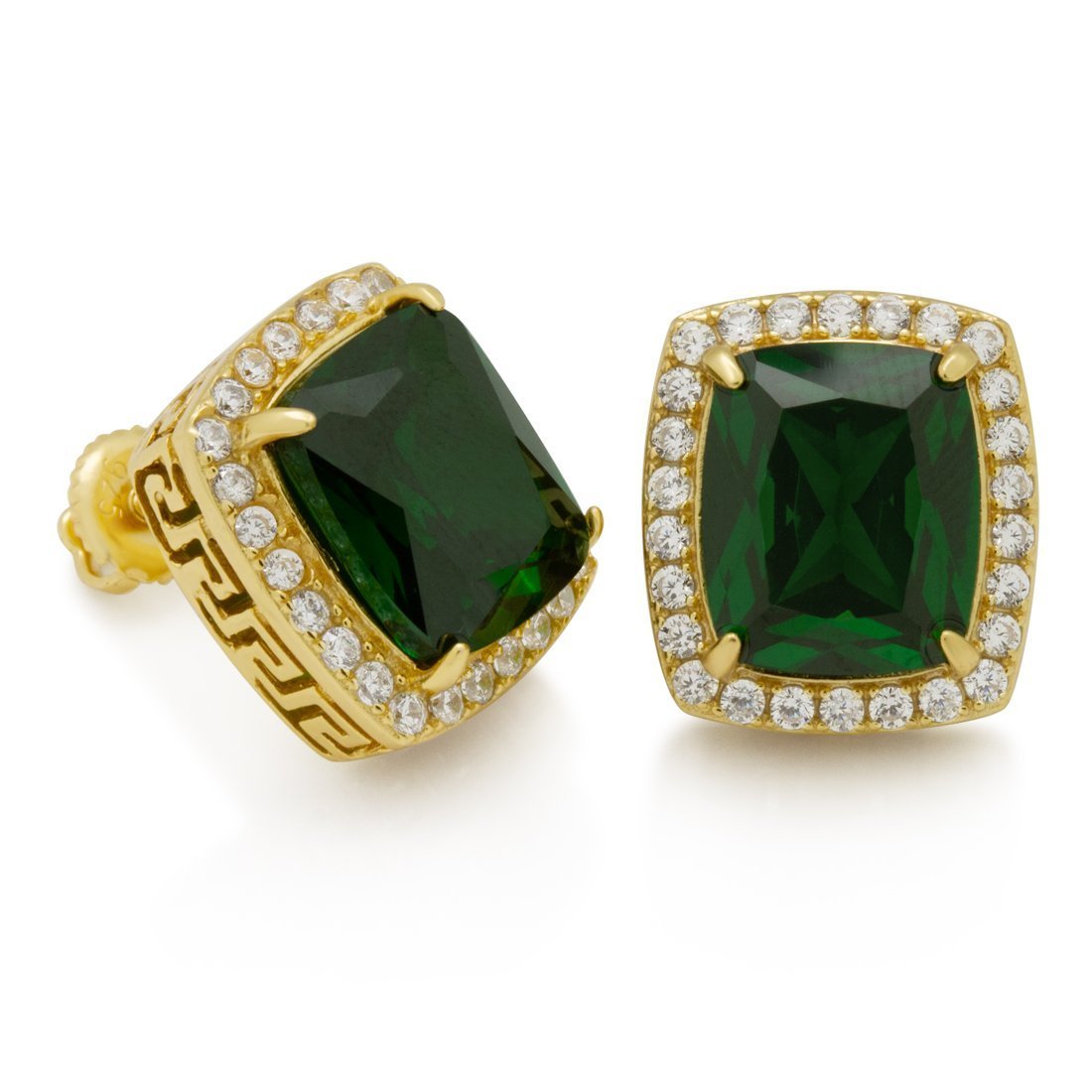 Each handset emerald VVS Diamond Simulate stone provides an elegantly cut piece that comes surrounded by clear stones, while the solid .925 Sterling Silver add value and shine to these earrings. Meanwhile, the Greek key design around the piece matches perfectly alongside your ear.
