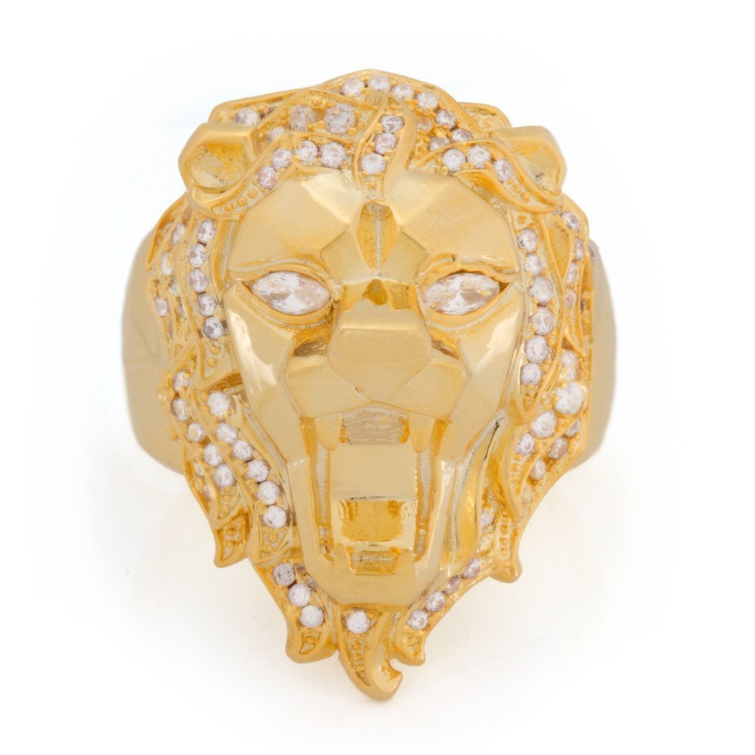 King Ice presents Faceted Lion Ring. With its jagged edges and vibrant AAA stones, the ring provides an elegant look to mix and match with any pieces.