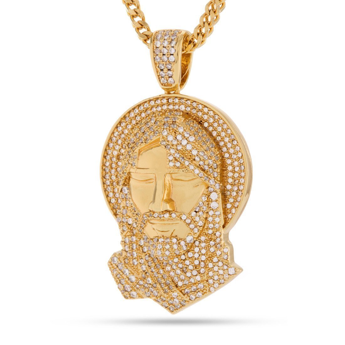 Cast away your enemies and put to rest your demons with our newest Jesus piece. Plated in 14K gold and lined with AAA handset stones, the Halo Jesus remains an iconic painting and image, now reimagined and engineered into a King Ice fashion piece. Each piece provides an iconic street-inspired look that comes paired with a 2.5mm, 26” stainless steel Franco chain.