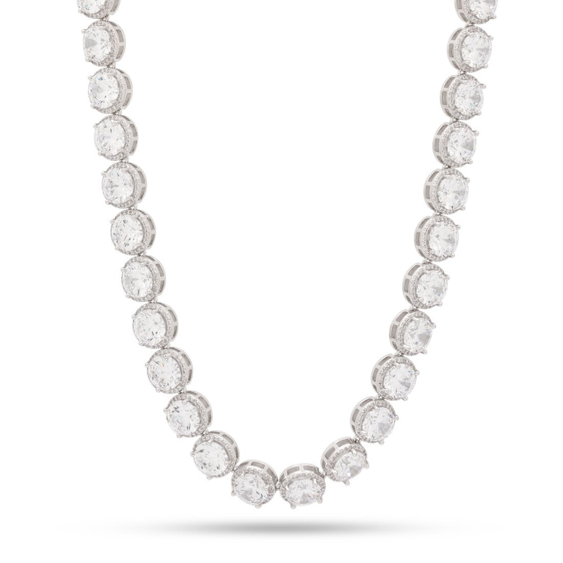 The 8mm Round Cut Tennis Chain has a large round cut CZ stone on each link. Glistening round stones neatly border the round stone for extra ice. The chain features a custom round tongue box clasp for a secure wear. The chains are available in 14K Gold plating and white gold plating for different styles.
