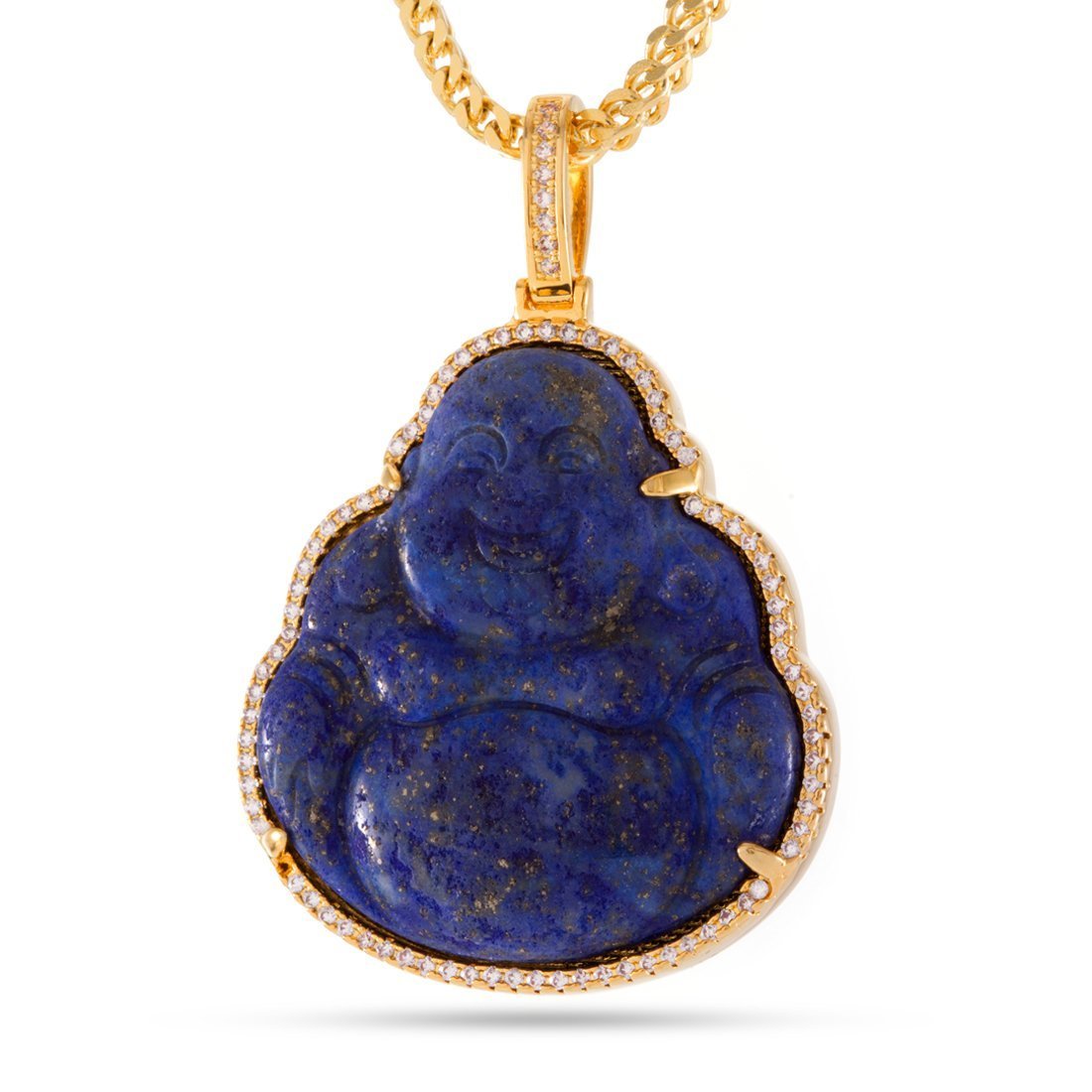 Made using genuine Blue Lapis gemstone (Stone of Wisdom) and plated with 14K Gold, the Buddha features hand-etched stones to create this solid, soothing pendant meant to ward off stress and protect the mind, body and soul. Each pendant comes with a 2.5mm, 20" stainless steel Franco chain.