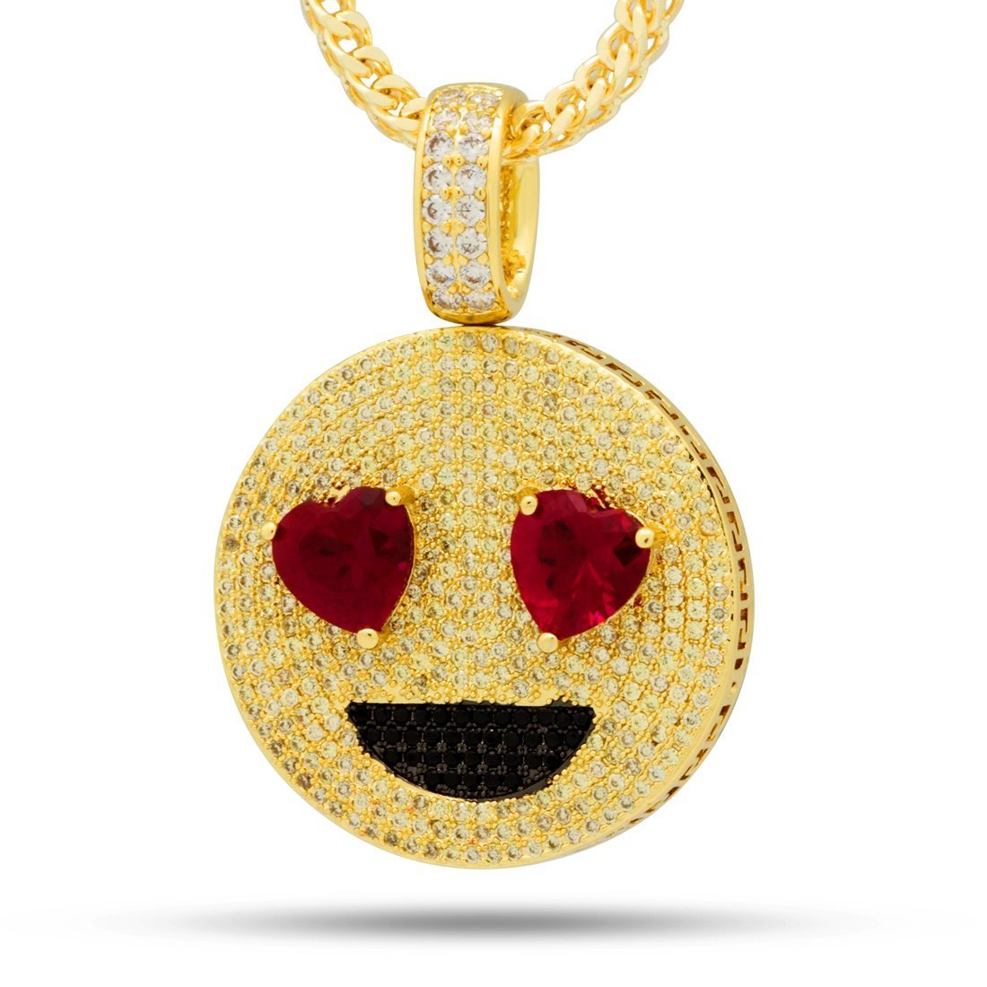 Sometimes your eyes glow with enjoyment, other times with anger. The Heart Eyes, Angry Face Emoji Necklace aims to represent this dual state of emotions. Each necklace uses AAA, handset stones and includes a 2.5mm, 26” Franco Chain.