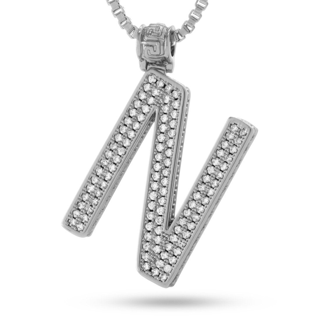 Plated in White Gold, each "N" initial necklace provides the perfect pairing for each and every occasion. Meanwhile, the micro pave setting provides added craftsmanship for each letter, while the 2mm, 26" necklace included provides the perfect pair.