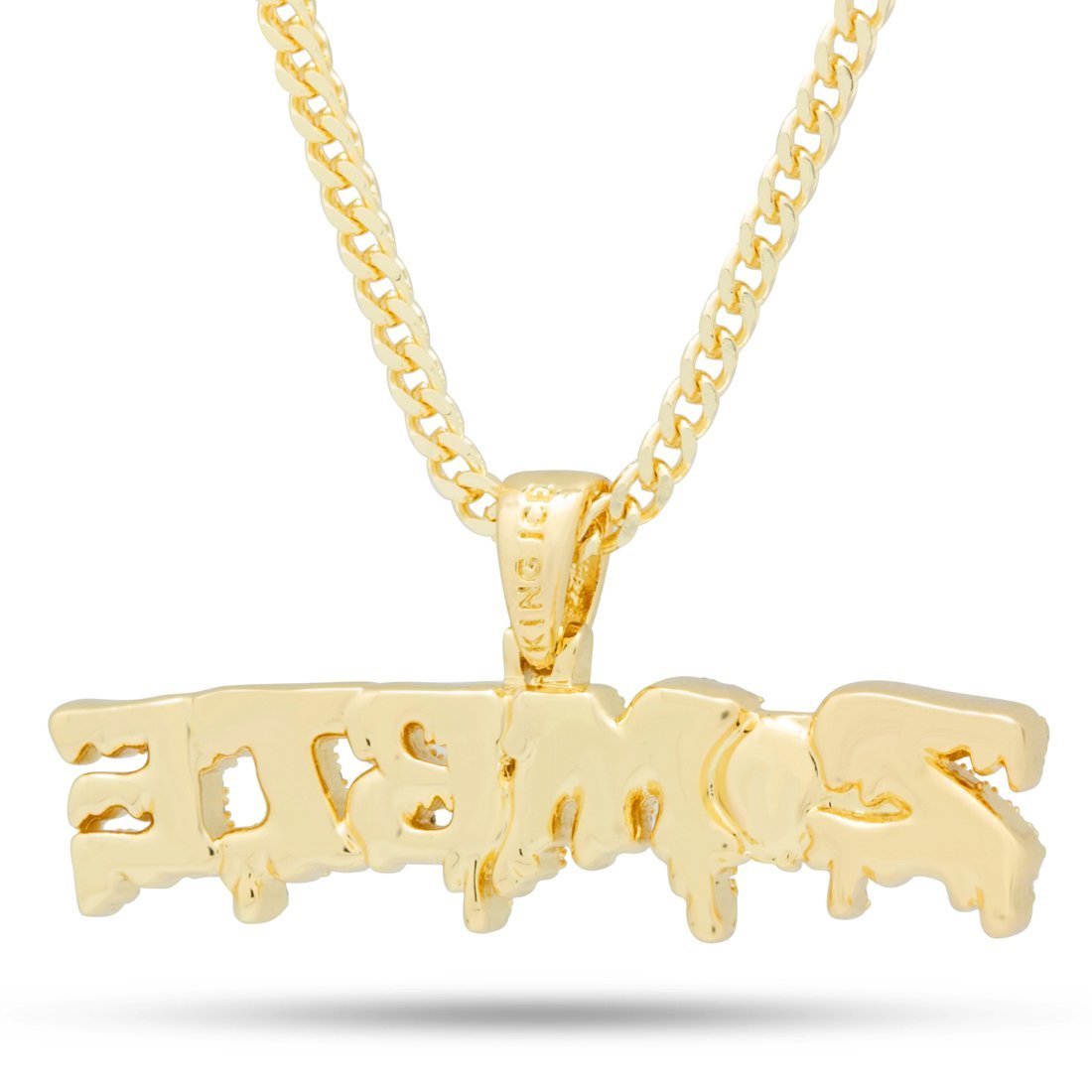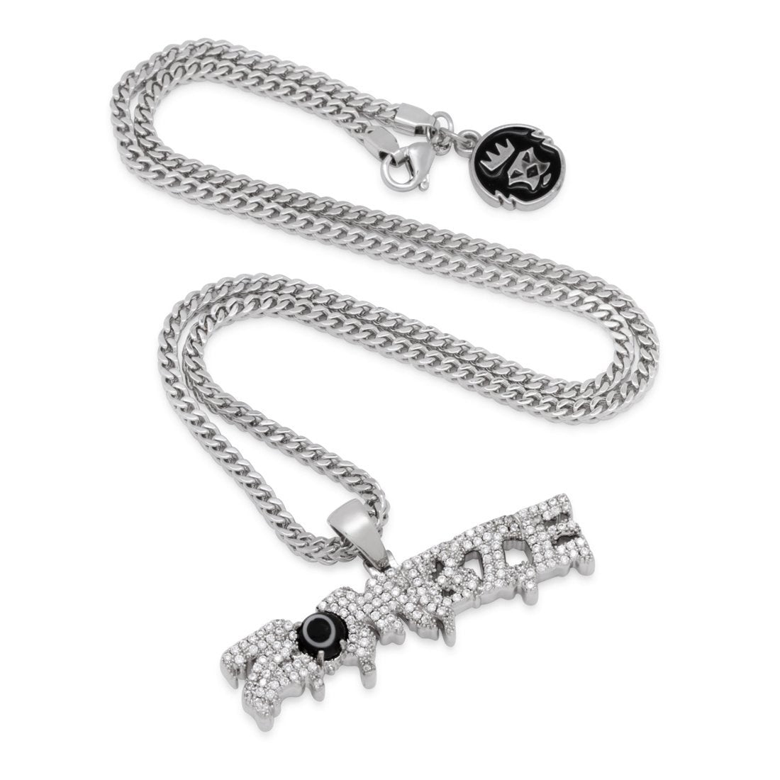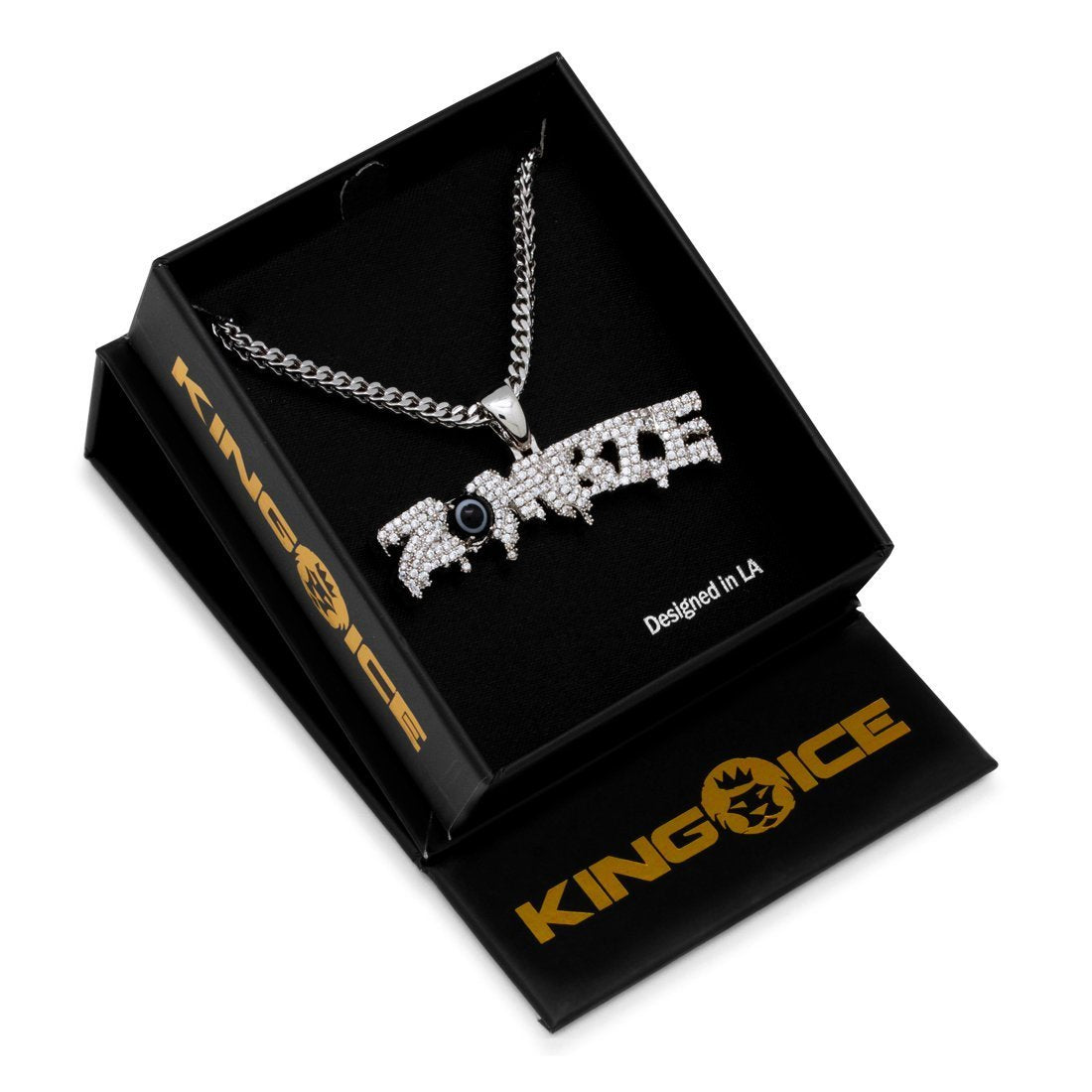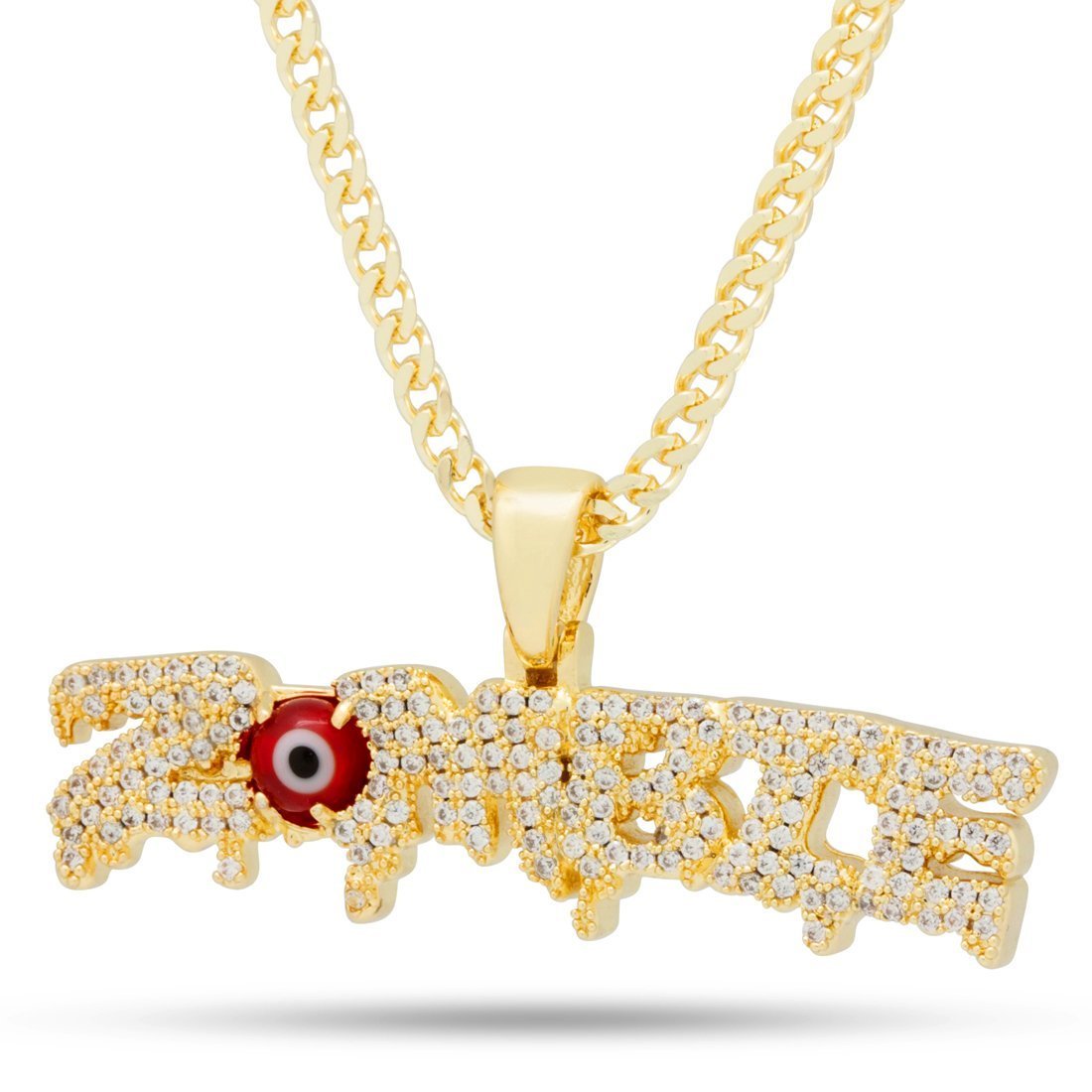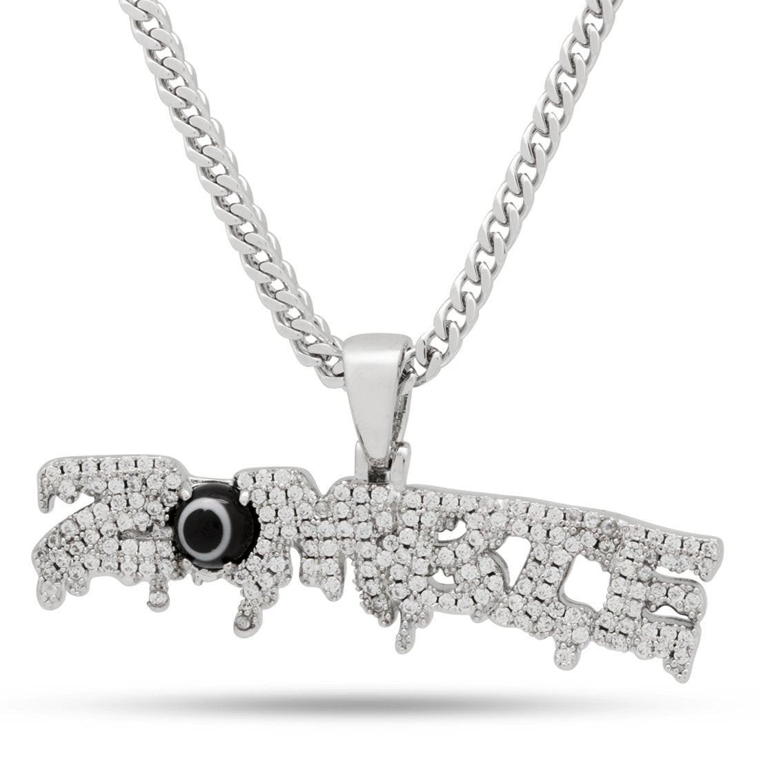 The Zombie Necklace is for all the zombie lovers out there. Each piece is plated with 14K Gold plating or white gold plating and has handset VVS Diamond Simulate stones. In addition, a single Evil Eye Bead is included for each pendant for a vibrant look. A 2.5mm, 20" Stainless Steel Franco Chain is paired with each pendant.